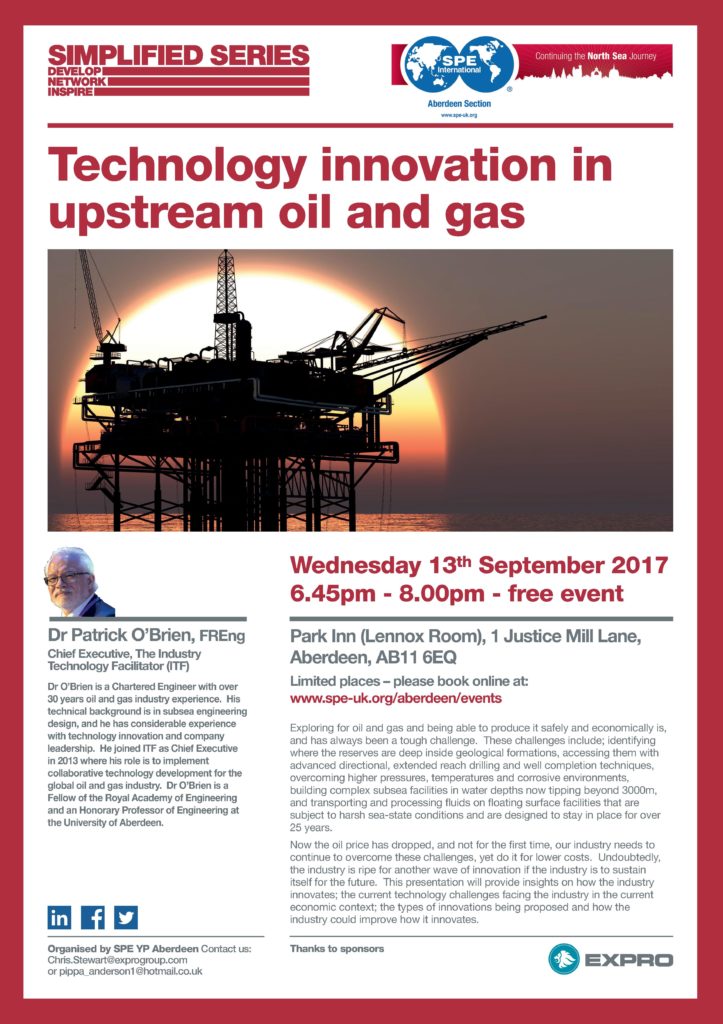 YP Simplified Series presents: Technology Innovation in Upstream Oil and Gas by Dr Patrick O’Brien, FREng, Chief Executive, The Industry Technology Facilitator (ITF).